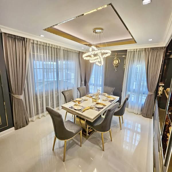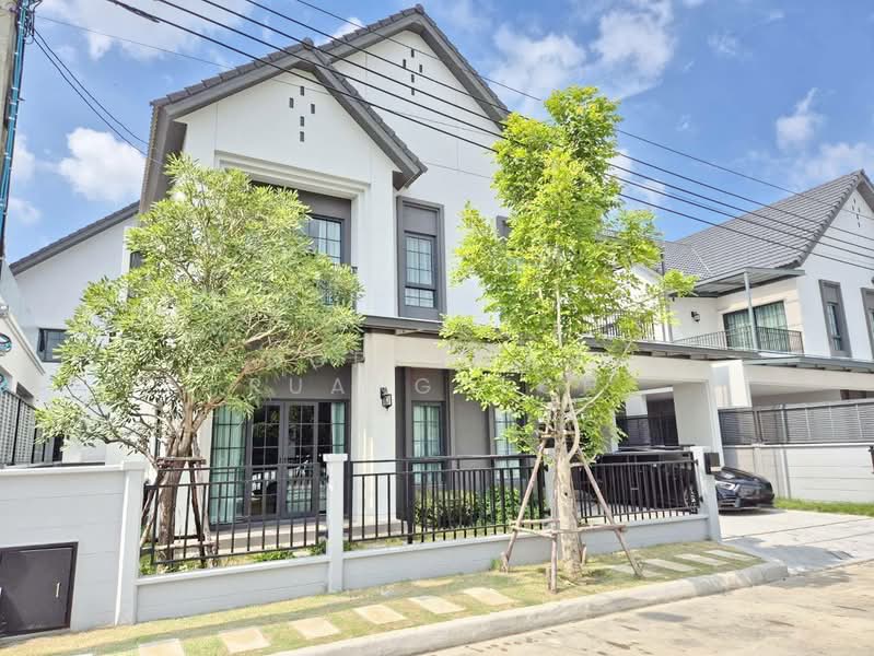 THE CITY Bangna 2 project , a large single house in an English style for you. The house has a distinctive feature of a large plot of land starting at 100 sq.w., usable area starting at 390 - 580 sq.m., near MEGA BANGNA and Concordian International School, starting price 26.9 million baht, with interesting highlights as follows: Location : The project is located on the Kanchanaphisek Ring Road, which can be accessed by a shortcut to MEGA BANGNA in just 1.5 kilometers. It is also close to Concordian International School and D-PREP International School in 1-2 kilometers, as well as the entrance and exit of 2 expressways, Kanchanaphisek Road and Burapha Withi Road, making it convenient to enter and exit the city. Common area atmosphere : The project is designed to emphasize a shady atmosphere with a large green garden and a clubhouse with high ceilings and complete functions including a fitness center, swimming pool, and an area for family activities. Suitable for those who like a common area with a good atmosphere and practical use. New house designs and usable space : This is considered a new design of THE CITY house, different from previous projects. Designed in the English Tudor Architecture style, it is unique with a high gable shape, emphasizing black and white tones, decorated with bricks and wood. There are 4 house designs, emphasizing starting usable space of 390 - 580 square meters, supporting up to 5 bedrooms.