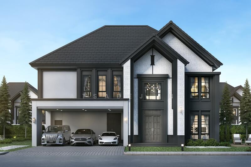 THE CITY Bangna 2 project , a large single house in an English style for you. The house has a distinctive feature of a large plot of land starting at 100 sq.w., usable area starting at 390 - 580 sq.m., near MEGA BANGNA and Concordian International School, starting price 26.9 million baht, with interesting highlights as follows: Location : The project is located on the Kanchanaphisek Ring Road, which can be accessed by a shortcut to MEGA BANGNA in just 1.5 kilometers. It is also close to Concordian International School and D-PREP International School in 1-2 kilometers, as well as the entrance and exit of 2 expressways, Kanchanaphisek Road and Burapha Withi Road, making it convenient to enter and exit the city. Common area atmosphere : The project is designed to emphasize a shady atmosphere with a large green garden and a clubhouse with high ceilings and complete functions including a fitness center, swimming pool, and an area for family activities. Suitable for those who like a common area with a good atmosphere and practical use. New house designs and usable space : This is considered a new design of THE CITY house, different from previous projects. Designed in the English Tudor Architecture style, it is unique with a high gable shape, emphasizing black and white tones, decorated with bricks and wood. There are 4 house designs, emphasizing starting usable space of 390 - 580 square meters, supporting up to 5 bedrooms.