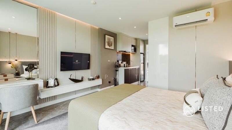 Studio 1 Bathroom Condo for Sale at The Coral Pattaya. Available in Foreign/Thai Name Ownership. Offering 27.32 Sqm of living area and located on the 8th floor. It comes full furnished, built-in European kitchen, fridge, microwave, electric hob, fitted furniture, built-in wardrobe, TV, and balcony with pool view.