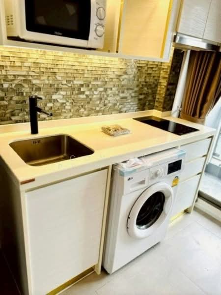 The Cuvee at Yaek Tiwanon Station. It's a 34-story high-rise condo right next to the MRT Purple Line, Yaek Tiwanon Station. There are many interesting highlights within the project. I've collected them here for you: (The project name has been changed from The Cuvee Tiwanon to The Cuvee at Yaek Tiwanon Station as of 8/2/2023) Location – The project is located on a major road on the Bangkok-Nonthaburi road, easily connecting to major roads around the area. It is also connected to the MRT Purple Line, Tiwanon Intersection Station, with an entrance and exit for the project approximately 30 meters away. Service – This is a project with a Service Hotel inside, managed by a 5-star hotel like Oakwood. Inside, there will be restaurants and beverages, Bellboy, airport shuttle service, etc., which are not found in nearby projects in this area. Safety – The project has good security with 10 CCTV cameras per floor, totaling around 300 cameras in the entire project. In addition, there is a Video Door Phone and CCTV camera in every unit, which is much more than other projects in this area. Room function and provided items – The room has organized functions in proportion. Every unit will have a closed kitchen with ventilation space. The items provided in the room will be innovations that facilitate living, such as Digital Door Lock, Video Door Phone, CCTV, Home Automation, Smart Mirror. Other materials provided are appropriate for the price level.