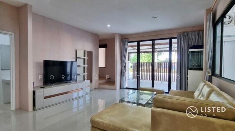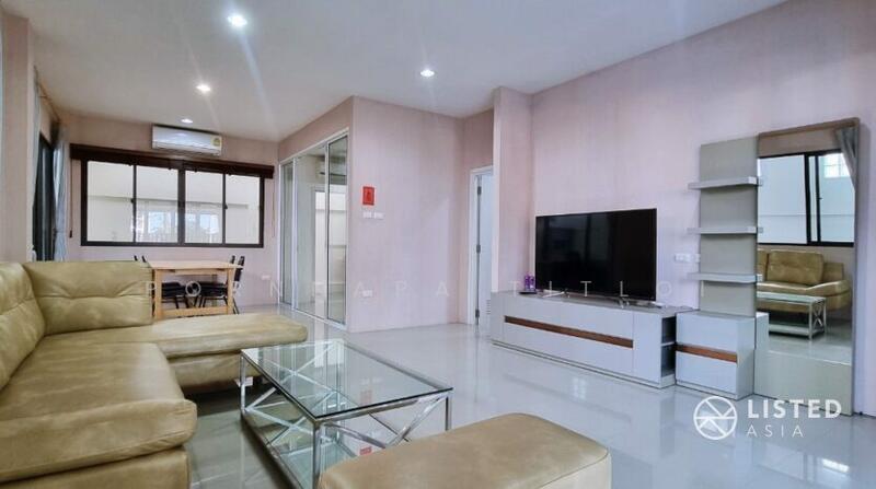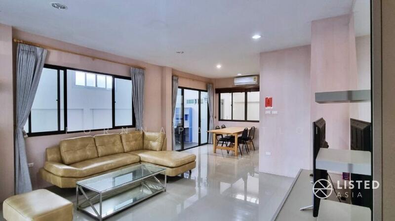 Land area 123.2 sq.m. and spacious living area 155 sq.m. Comes fully furnished including comfortable sofa set with TV, dining table beside modern European kitchen, storage room and dedicated work area. The master bedroom has an en-suite bathroom, balcony and walk-in closet. There is also parking space, making it an ideal choice for families or individuals looking for a stylish living space.