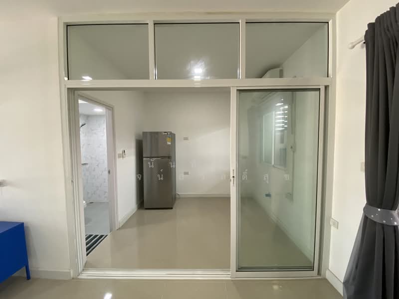ติดตั้งประตูกระจกบานเลื่อนกั้นแอร์ที่ห้องรับแขกชั้น 1 กับพื้นที่ครัว