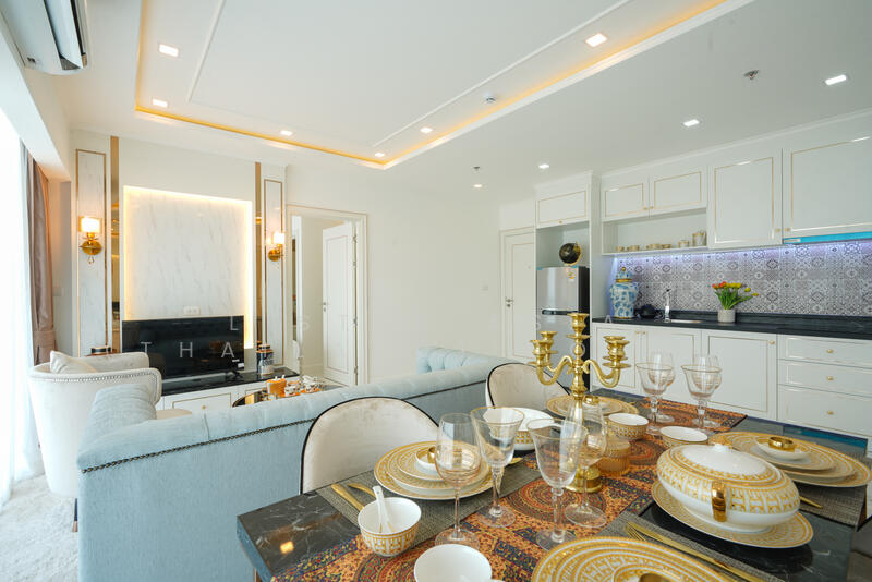 2 Bedrooms The Empire Tower for Sale – This stylish 2-bedroom, 2-bathroom condo in Jomtien offers a comfortable 64 sqm of living space on the 1st floor. Fully furnished and ready to move in, the unit features a spacious living area with a sofa, TV, and dining table. The built-in European kitchen is equipped with modern appliances, including a washing machine. Both bedrooms come with built-in wardrobes and en-suite bathrooms for added convenience. A private balcony completes the home, offering a relaxing outdoor space. Located just 800 meters from Jomtien Beach, this condo provides easy access to restaurants, shops, and public transport.