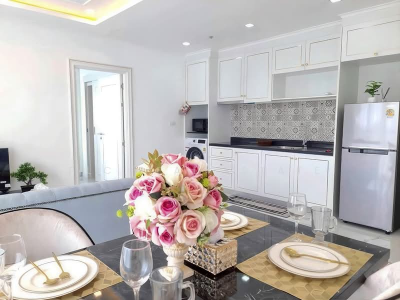 The unit is located on the 5th floor and is a corner unit with a spacious size of 62.84 sq.m. It features 2 bedrooms and 2 bathrooms, fully furnished with modern furniture and electrical appliances. In addition, the room offers a stunning sea view and panoramic city views, allowing you to enjoy the Pattaya International Fireworks Festival from your balcony. Consequently, it provides both comfort and a unique lifestyle experience.