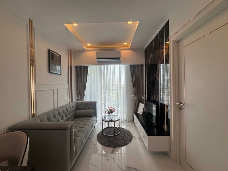 High Rise Zone Pattaya Condominium Project Empire Tower Pattaya is a freehold condominium project developed by Matrix Development and Real Estate Co., Ltd. located on Soi Bun Kanchana. Ram 8, Nong Prue Sub-district, Banglamung District Chonburi province The building model is a 24-storey high-rise building with a total of 1 building. The total unit size of the project is 440 units, consisting of 3 types of rooms: Studio (23.50 sq.m.), 1 bedroom (33.25 sq.m.) And 2 bedrooms (67.00 sq.m.) Empire Tower Pattaya is a project that is currently under construction and is expected to be completed in 2022. Empire Tower Pattaya consists of many amenities such as lobby, garden, swimming pool, fitness, gazebo, playground, shop within the elevator project, parking, as well as complete security system. Whether it is Access Key Card, Security Guard And 24-hour CCTV Empire Tower Pattaya Located near many shopping areas such as South Pattaya Makro (2.7 km), Tesco Lotus, South Pattaya (3.4 km), Big C South Pattaya (4.4 km), Central Festival. Pattaya (7.2 km), in addition, Empire Tower Pattaya is also close to hospitals and educational institutions such as Pattaya City Hospital (4.9 km), Pattaya Memorial Hospital (6.8 km), schools Pattaya City 7 (Ban Nong Phang Khae) (1.5 km), Thepprasit alphabet school (3.1 km) including various tourist attractions such as Patta ya Bungy Jump (2.6 km), Jomtien Beach (1.4 km), Pattaya Park Tower (4.5 km) etc. Empire Tower Pattaya can travel from Bangkok By using motorway or Buraphavithi expressway heading to Chonburi province Then enter the Pattaya area using Sukhumvit Road Then turn right into Soi Bun Kanchana Go straight for another 1.4 km and turn right. Drive straight for just 50 meters. The Empire Tower Pattaya project is located on the right hand side.