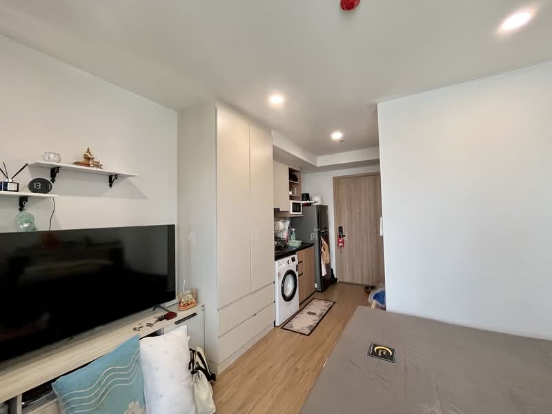 Studio condo for sale, size 24.11 sq.m., Building A, 12th floor. Good unit position near the elevator and fire exit, east-facing balcony with morning sun. While similar units from the developer start at 1.69 million Baht