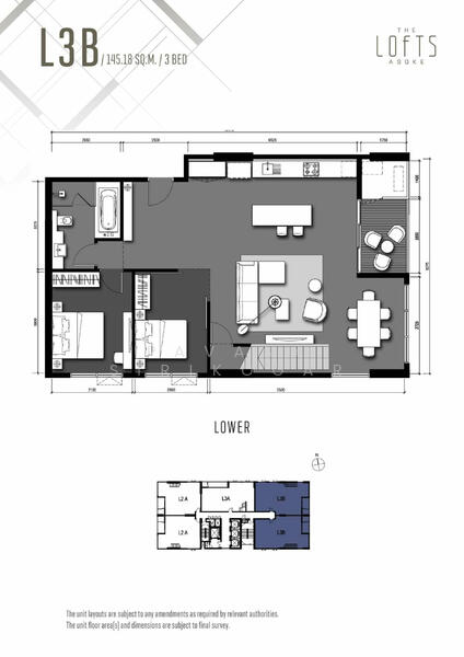 Floor size of this unit at The Lofts Asoke is 145 sqm.