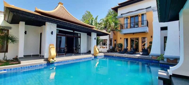 Designed in a unique Thai-Bali style, this villa combines modern comfort with traditional Thai elegance. It is beautifully furnished with contemporary furniture, featuring a fully equipped European-style kitchen with high-end appliances. Each spacious bedroom comes with built-in wardrobes, en-suite bathrooms, and private balconies.