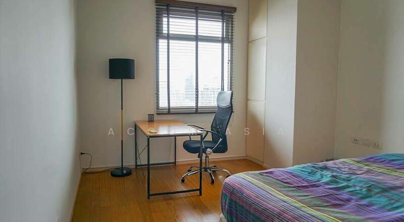 This unit set on a high floor, large glass sliding door open to a long balcony with overlooking unblocked view, received a lot of natural light. This room is decorated with fully furnished minimal earth tone style. More space for the family area.