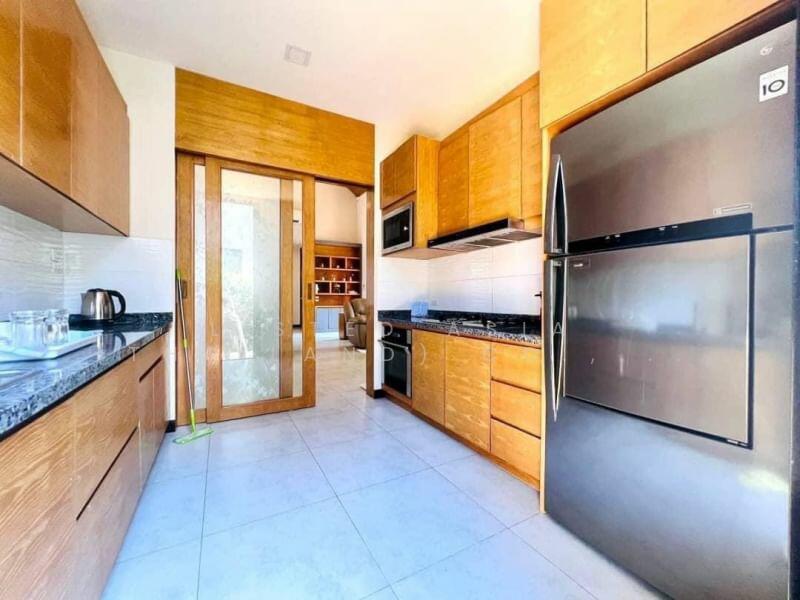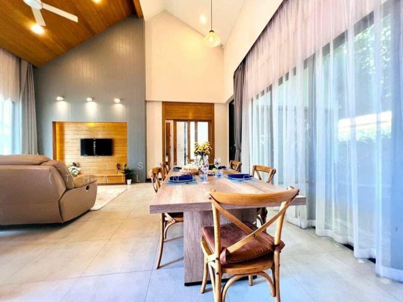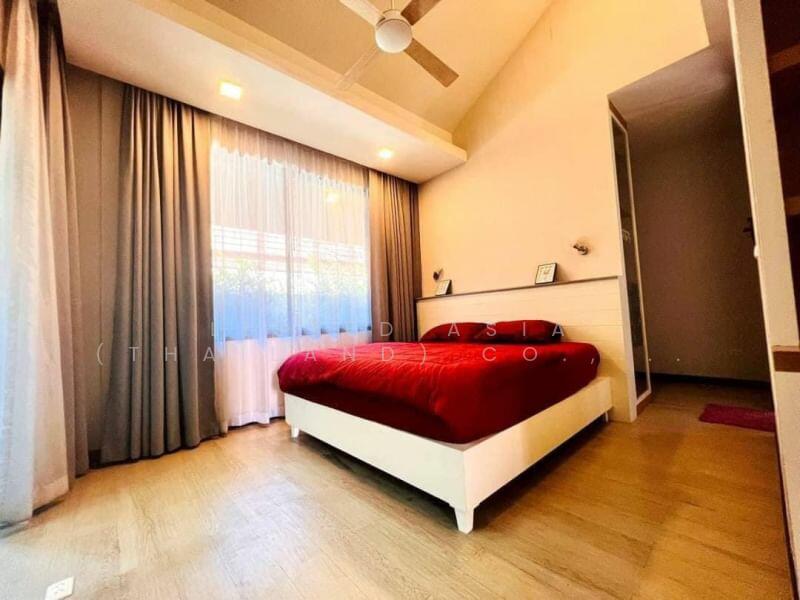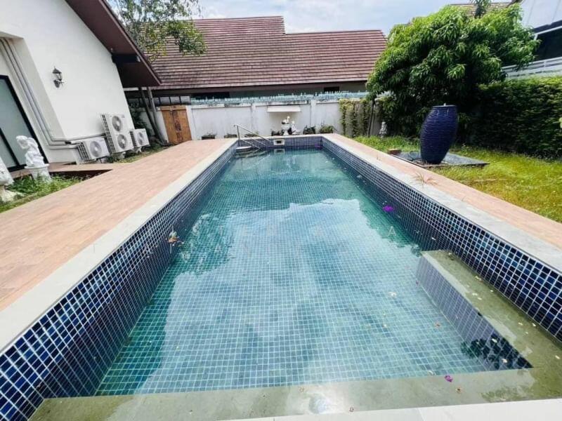 This is 3 Bedrooms 2 Bathrooms House for Sale in Huay Yai. Sits on 462 Sqm of land plot size and 270.70 Sqm of useable area. It comes full furnished, living area include sofa set and dining table, built-in European kitchen, en-suite bathroom, private swimming pool and a garden.