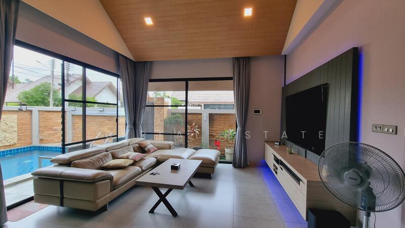 This fully furnished house features 2 bedrooms and 2 bathrooms, with a spacious layout of 150 sq.m., located in the well-regarded project The Maple Pattaya in Huai Yai.