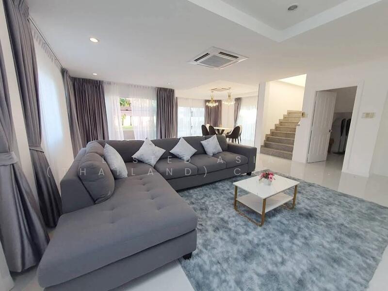 This fully furnished house is set on a 560 sqm. land plot with approximately 300 sqm. of usable area. It features a large living area with a dining table, a European-style kitchen with a gas hob and oven, perfect for home cooking. Each of the three bedrooms comes with its own en-suite bathroom, including one with a luxurious bathtub.