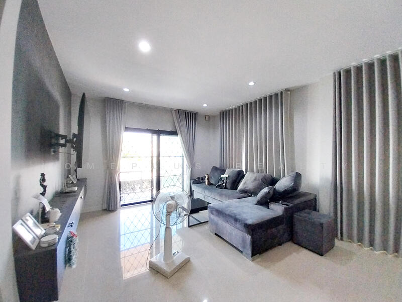 -ชั้นล่าง ปูพื้นด้วยกระเบื้อง แข็งแรง ทนทาน ดูแลง่าย ต่อเติมพื้นที่ใช้งานเพิ่มอย่างเป็นสัดส่วน ใช้ประโยชน์ได้คุ้มค่า ห้องนั่งเล่นมาพร้อม ทีวีสีโซนี่จอใหญ่