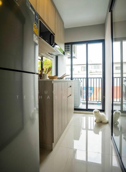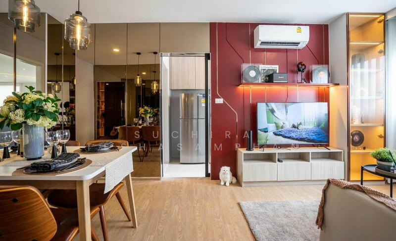 The Origin Bang Khae, to recommend. It was just launched on April 1st. The interesting thing about this project is the affordable price and the fact that you can keep pets. For those who like to keep dogs and cats, they will probably like it quite a bit. As for other highlights, I have summarized them as follows: It is currently the only condo in the area that allows pets. It comes with a lot of common areas because it is a large project. The rooms are priced the same for the entire project, 1.2 million baht, every floor, every location. You can also combine rooms in any location. Sold as an empty room, a Standard Room, where we have to set aside money to decorate the room ourselves, but it allows us to design and choose furniture for the room ourselves as desired. The location can connect to many main roads. At the entrance of the alley, there is the Bang Khae MRT, which is an option for traveling into the city. Or you can call public transportation in front of the project, which is convenient.