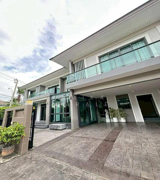 This project is called “The Palm Phatthanakan.” This project can be considered a pilot project for Pruksa’s high-end housing developments, as most of us are familiar with Pruksa’s homes priced below 10 million baht. However, this time, Pruksa has taken the initiative to create a brand in the 10-25 million baht range. The project’s highlight lies in the size of the houses, which are quite large compared to surrounding low-rise projects.