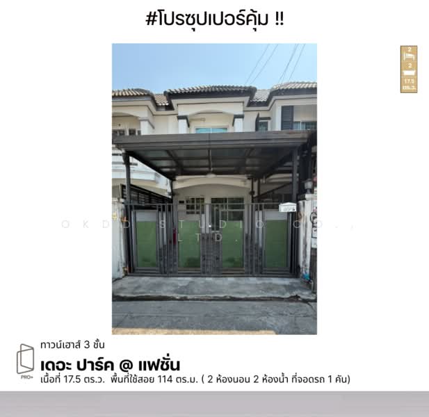เนื้อที่ 17.5 ตร.ว. พื้นที่ใช้สอย 114 ตร.ม.