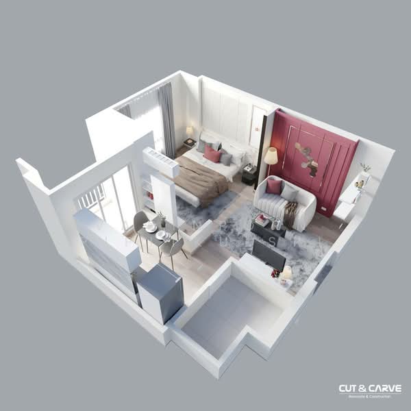 - เป็นห้อง 1 Bed ( 1ห้องนอน 1 ห้องน้ำ ) แบ่งเป็นสัดส่วนที่ลงตัว