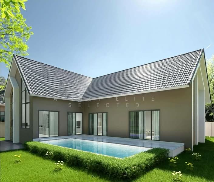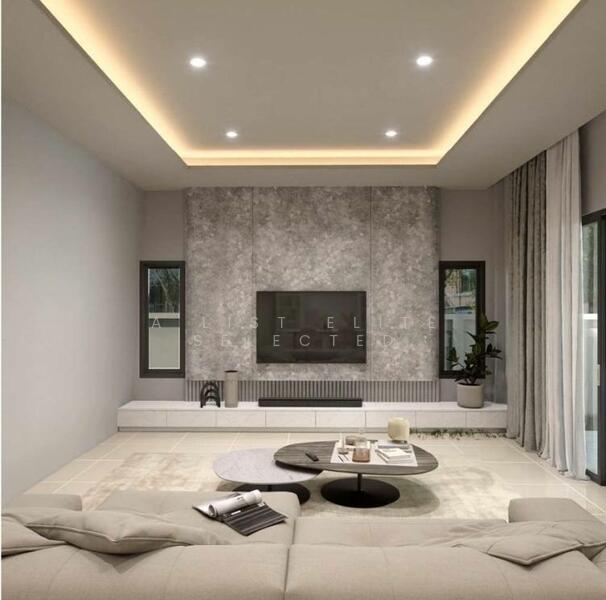 Contemporary design with 3 bedrooms plus 1 multipurpose room, 4 bathrooms, double-volume living area, built-in European kitchen, private saltwater pool, and lush garden. Only 1 km from Mabprachan Reservoir. Ready to move in early 2025.