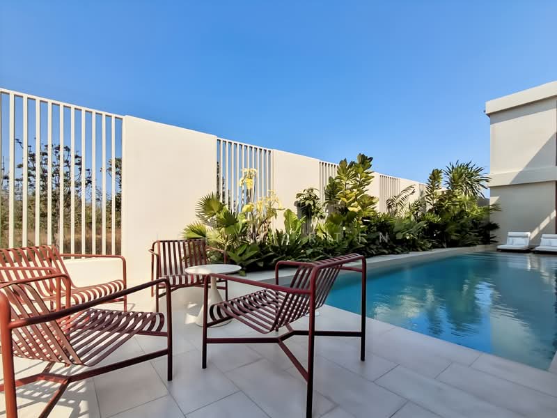The villas offer spacious layouts with private swimming pools and thoughtfully designed interiors that emphasize individuality and open living spaces. The featured villa is a two-storey 5-bedroom, 6-bathroom pool villa with a generous living area of 440 sqm on a 420 sqm land plot.