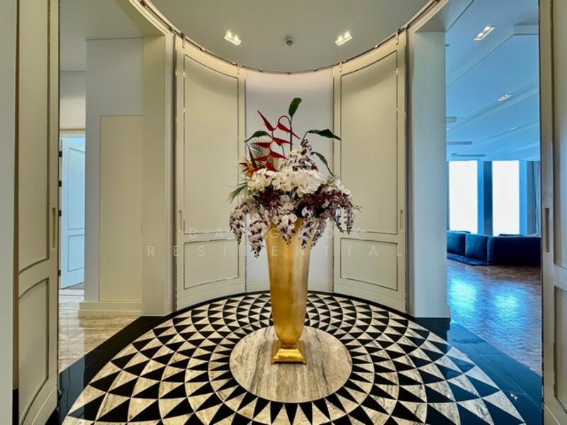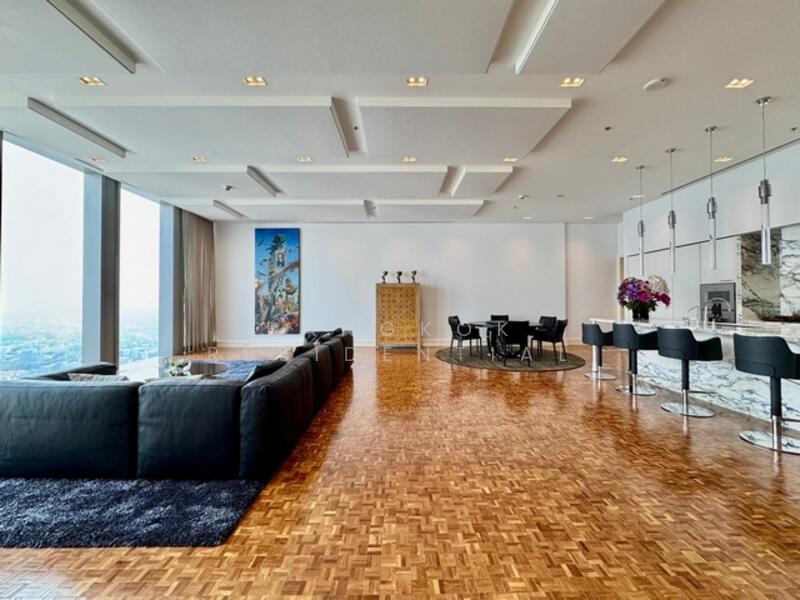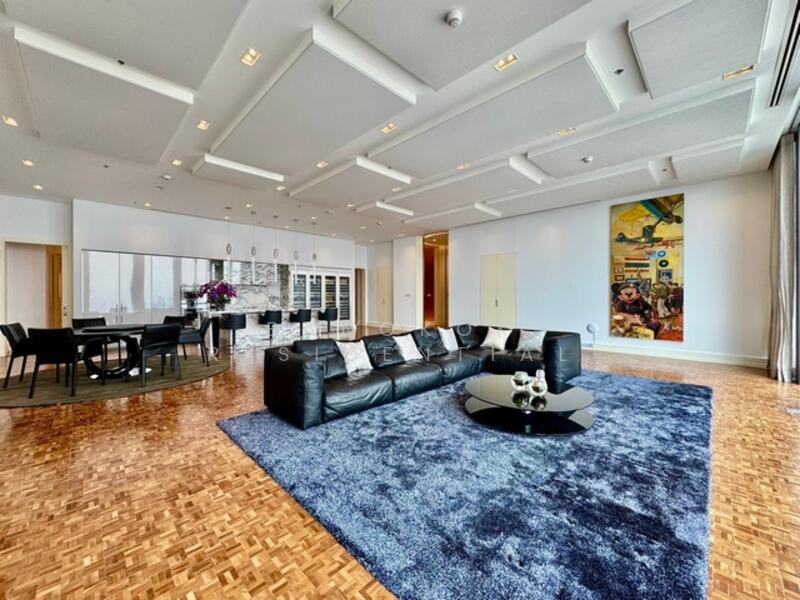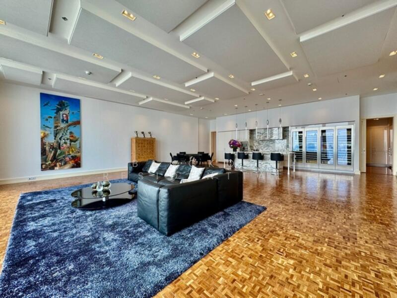 This fabulous 4 bedroom super luxury condo is available for sale at 258,000,000 Baht. Spanning a generous 400 square meters on one of the highest floors, this fully furnished residence boasts stunning modern décor and luxury fixtures and fittings that elevate every space. As you enter, you're welcomed by a spacious living area, beautifully appointed with tasteful furnishings that combine style and comfort perfect for both entertaining and unwinding in an elegant setting.