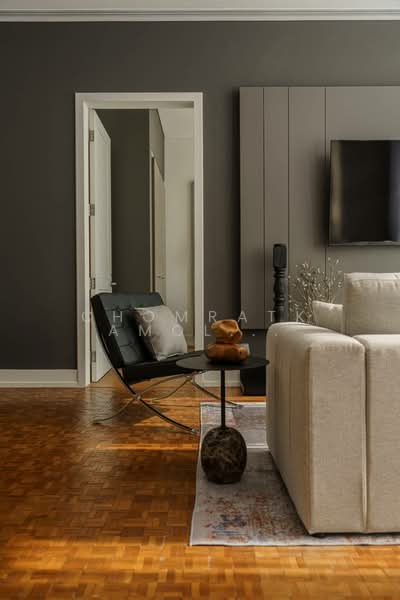This 134 square meter freehold condo offers a refined city residence in Si Lom, Bang Rak. It is set in The Ritz-Carlton Residences Bangkok, a new development with 77 floors and 209 units. The home is on the 23rd floor and is fully furnished with a modern interior.