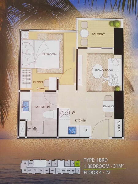 Floor size of this unit at The Riviera Ocean Drive is 31 sqm.