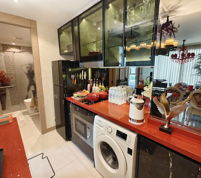 Originally designed as a showroom unit, the condo features premium furnishings and elegant interior styling that create a warm yet luxurious atmosphere. The layout includes a fully equipped kitchen, spacious living area, and two Smart TVs, making it ideal for both comfortable living and entertaining.