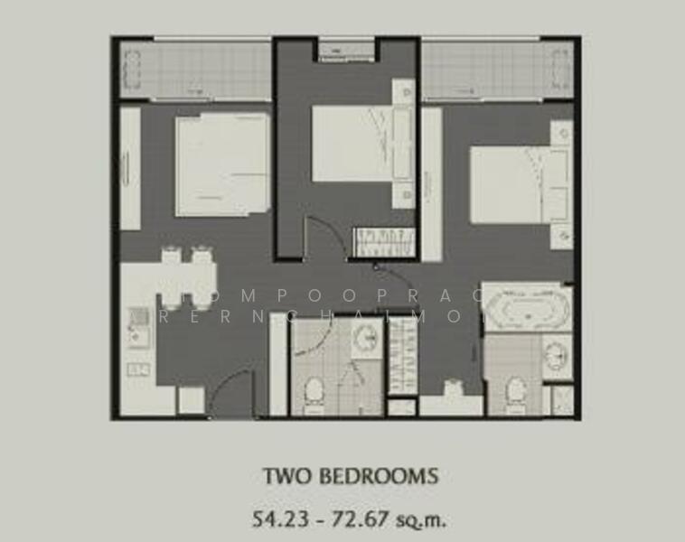 Fully furnished 2 bedrooms, 2 bathrooms condo for rent with a floorsize of 70 squaremeters, located on the 7th floor, at The Seed