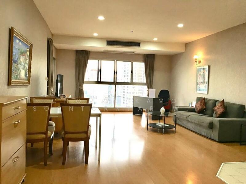 This spacious 2-bedroom condo offers 120.38 square meters on the 23rd floor of The Waterford Diamond in Khlong Toei, Bangkok. It is fully furnished and provides a comfortable high-rise home with city views and bright interiors.