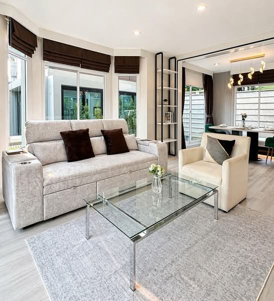 พื้นที่รอบบ้านมีสวนสวยและอยู่ใกล้คลับเฮาส์และสระว่ายน้ำ