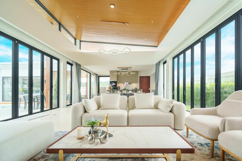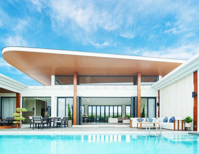 Nestled in the picturesque region of Hua Hin, Prachuap Khiri Khan province, lies an exceptional housing project perfectly suited for a dream holiday home. With its commanding view of the Gulf of Thailand, the project takes full advantage of the natural surroundings, offering a refreshing ambiance and excellent ventilation, making it an ideal destination for those seeking relaxation and comfort. The pool villas are thoughtfully designed to blend elegance with practicality, considering various factors such as the local climate, compass points, sunlight, wind, and precipitation. This ensures that each villa is a harmonious sanctuary, providing a tranquil retreat for its residents. As you make your way to the pool villas, a captivating sight awaits you. The main avenue is beautifully adorned with lush greenery on either side, not only enhancing the scenic beauty but also acting as a shield, reducing external heat and noise to maintain a serene atmosphere within. Upon reaching the pool villa, the living room is an architectural marvel, featuring an open design that seamlessly connects to both the front and back areas. This clever arrangement allows residents to relish the scenic views of the garden and the inviting swimming pool. The strategic layout ensures a continuous flow of fresh air from the outside, creating a cool and breathable living space. In summary, this housing project in Hua Hin stands as a testament to exceptional design and a deep understanding of the local environment. Its alluring blend of natural beauty, sophistication, and comfort makes it the perfect choice for a holiday home that promises an unforgettable retreat experience.