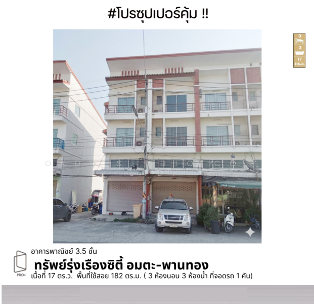 อาคารพาณิชย์ ทรัพย์รุ่งเรืองซิตี้ 1 อมตะ-พานทอง ขนาด 3 ห้องนอน