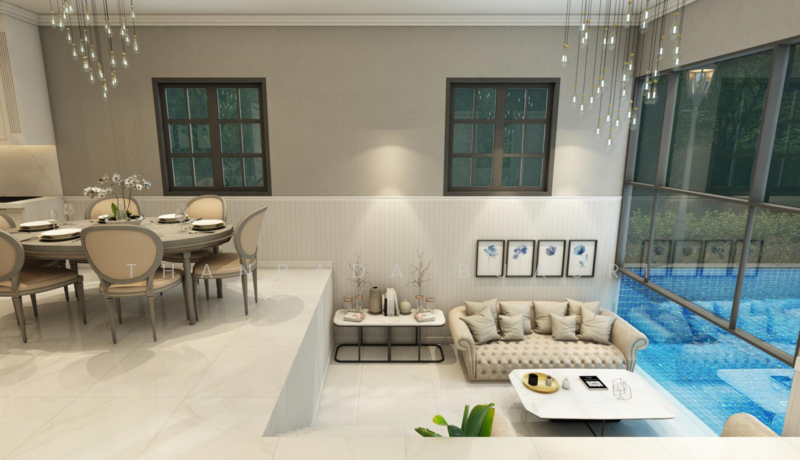 The Tnergy Elegance Pool Villa stands in the heart of Hua Hin, just 2.8 kilometers away from the Bluport Department Store. It offers two distinctive models: a one-story villa with a rooftop and a two-story villa with a rooftop, boasting 3 to 5 bedrooms and adorned in a European Classic style. One of the villa's unique features is the striking Aquarium Swimming Pool. The underwater view visible through glass from the guest room inside the house.