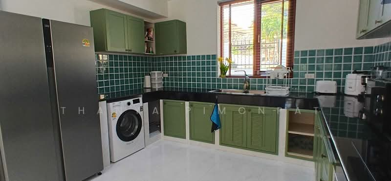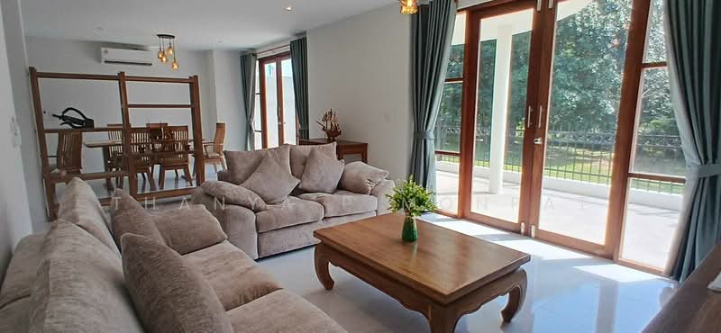 The property provides 210 sqm of living space, featuring 4 bedrooms and 3 bathrooms, a spacious living and dining area, and a fully equipped Western-style kitchen. The villa comes fully furnished with high-quality teak wood furniture, creating a warm, elegant, and welcoming atmosphere throughout the home.