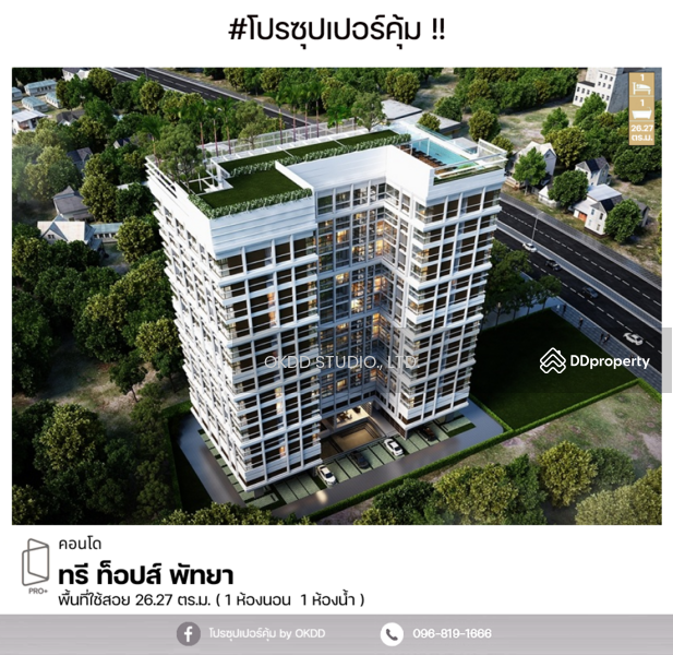 Highrise condominium project in South Pattaya with starting price less than 2 million. TREETOPS Pattaya is located on Thappraya Road. The unique location is surrounded by a natural atmosphere. This is beautifully designed. Privacy The project is a 1-storey building of 15 floors with 252 units. Finished ready TREETOPS Pattaya has facilities such as swimming pool, fitness center, car park, elevator, etc. The price of TREETOPS Pattaya starts at 1,600,000 Baht. Pattaya TREETOPS project to buy and invest. Located on Thappraya Road. Front of the Pattaya Court On the opposite side of the project is Soi Thap Phraya 12, which is connected between South Pattaya and Jomtien Beach. The location is not very crowded traffic. It is a big road and not very long. The number of shelters is not very crowded. Traffic to and from the project is not very difficult. Getting to and from TREETOPS Pattaya has many options. The nearest method is the Thep Prasit Road. Can travel Sukhumvit Road Or other routes such as South Pattaya Road, turn to Pattaya 3rd Road, which can also come to Thap Phraya Road one way. The surrounding facilities are within walking distance. There are restaurants and convenience stores. Hotels | TREETOPS Pattaya Boutique Condo on the best location of Pattaya. Located on Pratumnak Hill between Jomtien and South Pattaya. Located on Pattaya Beach, just 1 hour drive from Suvarnabhumi International Airport and only 90 minutes from Bangkok, only minutes away from the city. Project TREETOPS Pattaya design building in modern style. Beautiful The building is white, interspersed with the gray color of aluminum and the color of the glass. The details are clean. Reflecting on the modernity of the condominium in the sea view. The building is equivalent to a 15-storey condominium, with floors 1-3 facing the lobby. The TREETOPS building is C-shaped (C Mirror), facing the concave side of the C building. North For open view. City View and Sea View The view of Pattaya. It is considered to be a beautiful night light. The project has approximately 44 parking spaces, or 17% of the total, due to the laws of the provinces, the number of parking spaces is lower than in Bangkok. Travel by car TREETOPS Pattaya, which is about 150 km away from Bangkok, use Highway 7 (Bangkok - Chonburi). Or motorway) - to Bang Lamung district. Then take Highway 3 (Sukhumvit) to Pattaya. Or off the motorway in Chonburi. From Chonburi town, take the Sukhumvit Road or take the Chonburi route. Head to South Pattaya. Then head towards Thap Phraya Road. TREETOPS Pattaya TREETOPS Pattaya is located in South Pattaya. Big C Extra, King Power Duty Free Mall, Big C South Pattaya, Pattaya Memorial Hospital, Central Festival Pattaya Beach, Pattaya Beach, Pattaya Beach Road, Pattaya. Avenue, Hard Rock Cafe, Mike Shopping Mall Within 10-25 minutes walking distance, it is convenient and quick to drive. And if the residents of TREETOPS Pattaya want to visit the bustle. You can go on the beach road as a source of tourist attractions, hotels, entertainment and shopping centers to choose from a variety of Central Festival building, computer or anyone want to go walking Walking Street. TREETOPS Pattaya has a convenience store nearby. It can meet all basic needs every day, there is a necessity in everyday life to choose. Not far from Pattaya TREETOPS, there are many shopping and dining outlets in Central Festival Pattaya and many other supermarkets. In addition, the TREETOPS Pattaya area also has many local restaurants and street restaurants. It is located away from Food Mart supermarket, Bali Ha Plaza, Tops Daily and other entertainment venues. Just a short drive. Project Name: Tree Tops Pattaya Developer: Boutique Group Location: Thap Phraya Road, Banglamung, Chonburi Project area: 1 rai 2 ngan 62.00 sq.w. Project Type: 1 building, 15 floors, 252 units Construction Status: Completed Ready Facilities: swimming pool, fitness, parking, lift Security: CCTV and 24 hours security guard. Starting Price: From 1,600,000 Baht Average price: From 64,000 Baht / sq.m. Room Type - Studio (24.00 - 25.00 sq.m.) - 1 Bed (34.50 sq.m.) - 2 Bed (69 sq.m. Combined) Pattaya City Resort South Pattaya Center Condo South Pattaya Condotel Condotel South Pattaya A Plus Condominium South Pattaya City Garden Condominium South Pattaya Avenue Residence South Pattaya De Luxe Resort South Pattaya Diana Estate Condominium South Pattaya Four Seasons Place condominium South Pattaya Pride Condo South Pattaya UNIX South Pattaya condominium View Talay Sea Pattaya Beach Condo 6 South Pattaya Water Park Condominium South Pattaya