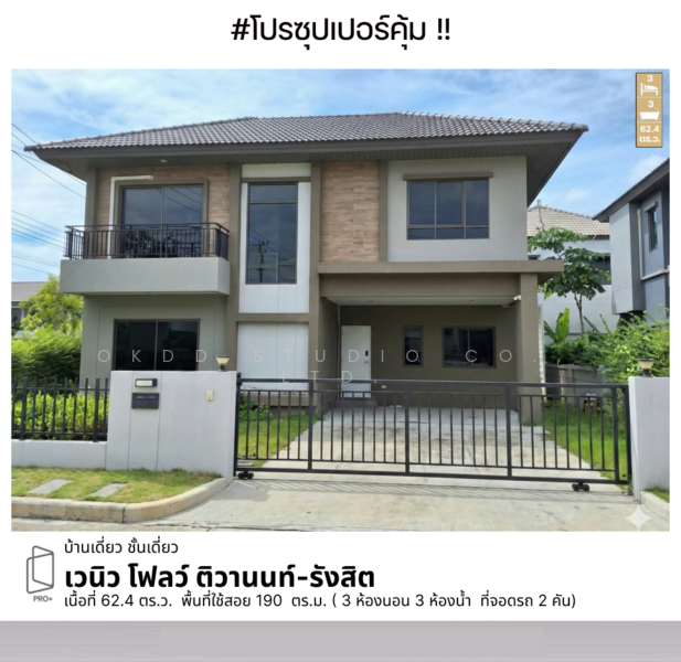 3 ห้องนอน 3 ห้องน้ำ ที่จอดรถ 2 คัน
