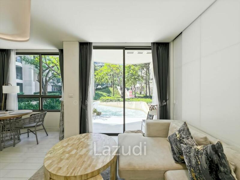 This 66 sqm freehold condo at Veranda Residence Hua Hin offers a bright open-plan layout and a calm resort-style atmosphere. The unit sits on the first floor and enjoys direct access to an outdoor patio or garden area with landscaped greenery.