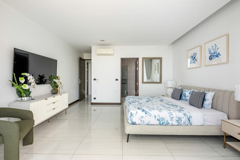 All five bedrooms are generously sized, each with an en-suite bathroom and private balcony offering sea or hillside views. The property also presents strong long-term rental potential of approximately THB 400,000 per month on a yearly contract.