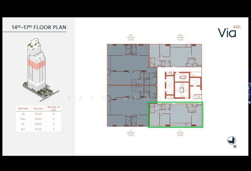 Via ARI is a distinguished condominium situated at 42 Soi Ari 1, Samsen Nai, Phaya Thai, in the highly desirable district of Bangkok, Thailand. Scheduled to be completed in 2026, the developer behind the project is Sansiri, one of Thailand's leading property developers. This freehold development comprises 114 residential units across 26 floors, offering a diverse selection of one-bedroom, two-bedroom, and three-bedroom apartments to cater to various residential preferences. The development includes a rooftop garden, pet-friendly areas and modern facilities, making it a perfect choice for people looking for comfort and convenience in their living spaces. Via ARI is located in the lively Ari neighbourhood, known for its artistic feel and excellent transport links, thanks to the nearby Ari BTS Station (N5) on the Sukhumvit Line. The area mixes old-world charm with modern style, offering a peaceful yet active atmosphere that suits those seeking a balance of city living and community spirit. The condominium includes modern amenities like a swimming pool, gym, and meeting room, all of which aim to improve the living experience and meet residents' varied needs. Via ARI incorporates Ari's 'Heritage Vibe' into its design, blending traditional charm with contemporary sophistication. This gives residents a unique living experience that mirrors the area’s artistic character. Via ARI enjoys unmatched convenience. It is just a short walk from Ari BTS Station (N5) on the Sukhumvit Line, providing residents quick access to Bangkok's extensive public transport network. For those who drive, the condominium is strategically connected to major roads like Phahon Yothin Road and Vibhavadi Rangsit Road, facilitating smooth journeys into central Bangkok. In addition to its excellent public transport links, the vibrant neighbourhood of Ari adds to its appeal, with numerous dining, shopping, and lifestyle options just around the corner. Via ARI is thoughtfully designed to offer a range of facilities catering to diverse lifestyle needs. The development features premium facilities like: 24-hour security keeps the area safe and secure for everyone living there. Air conditioning facilities provide a comfortable indoor experience throughout the development. A well-planned car park offers ample parking space for residents and visitors. CCTV surveillance enhances security by monitoring key areas around the property. The community garden provides a green space for residents to relax and connect with nature. A dedicated fitness corner allows residents to engage in outdoor exercises and workouts. The gymnasium room has modern fitness equipment for a complete workout experience. The lift lobby offers convenient access to different levels of the building. A well-designed main entrance ensures a welcoming and secure entry point for residents and guests. The meeting room offers a calm and professional environment for meetings and discussions. Pet-friendly facilities cater to the needs of residents with pets, ensuring a comfortable environment. A spacious swimming pool offers a refreshing retreat for relaxation and leisure. These amenities at Via ARI are designed to help residents relax, keep fit, and socialise with each other. They create a peaceful setting where modern life blends easily with the area's historical charm. Families residing in Via ARI benefit from proximity to several educational institutions, including: Waivicha KiDO BTS Ari Kornkaew International Montessori School (KIMS) These schools provide convenient access to education and support the needs of families living within the area. Residents have access to various medical facilities in Bangkok, including: Phyathai 2 Hospital Rajakhru Medical Center Pruksa Clinic Ari Branch These facilities ensure residents have access to top-notch medical services within the city. Via ARI is surrounded by a diverse range of culinary delights, including: Krua Thai Makok After You Dessert Cafe @ La Villa Ong Tong Khao Soi Baan Peung Chom Sasori These dining options, along with the lively street food scene of Soi Ari and the nearby Ari Station Market, provide residents with a wide array of gastronomic experiences to explore. Convenience is further enhanced with several supermarkets nearby, including: Villa Market Tesco Lotus Freshour Market Vanit Place Aree Additionally, nearby shopping malls like Central Plaza Ladprao and Union Mall offer diverse retail and dining options. Via ARI occupies a prime site at 42 Soi Ari 1, Samsen Nai, Phaya Thai. The development is architecturally distinguished, expected to rise to multiple storeys, and spans a significant site area. The design harmoniously blends urban elegance with the natural surroundings, showcasing notable architectural elements that reflect the unique character of the Ari neighbourhood. Via ARI Condominium Phaya Thai 1,600 sqm 114 Residential units A diverse range of one-bedroom, two-bedroom, and three-bedroom apartments ranging from 45.25 sqm to 154.75 sqm. Via ARI is being developed by Sansiri, a top property developer with a strong reputation for creating carefully designed homes. With over 33 years in the business, Sansiri is known as Thailand's only fully integrated property developer, offering a wide range of services beyond the typical development approach. Sansiri has developed several notable projects, including: Siri Residence The Monument Thong Lo Via ARI is situated in a neighbourhood with several other prominent residential developments contributing to the vibrant community atmosphere. Nearby projects include: The Vertical Aree Noble Reform CENTRIC Ari Station Via ARI is a fantastic choice if you're after a bit of luxury in one of Bangkok's prime locations. It boasts sleek modern facilities, easy transport access, and growth potential, so it's perfect for individuals and families who want a top-quality city lifestyle. Its modern design and excellent amenities make it appealing to homeowners and investors. In a co
