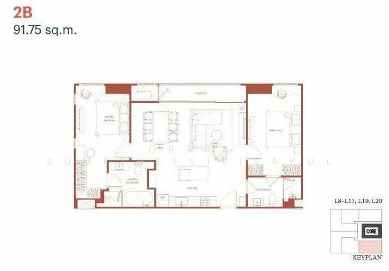 Fully furnished 2 bedrooms, 2 bathrooms condo for sale with a floorsize of 91.75 squaremeters, located on the 9th floor, at Via