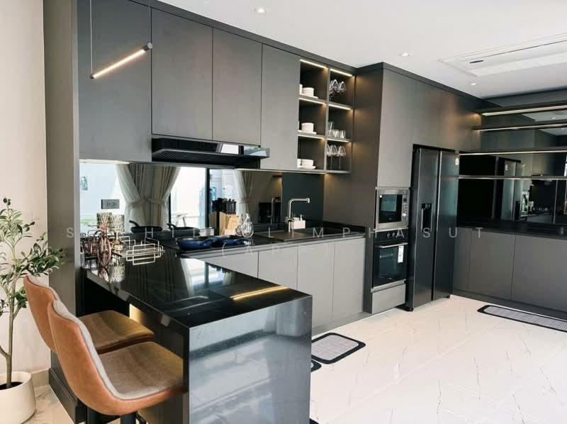 This is Modern Villa 4 Bedrooms, 5 Bathrooms for Sale in Jomtien. Is Available in Thai Name Ownership, sitting on 376 Sqm of land size, 330 Sqm of usable area, comes full furnished, European kitchen with full equiptment, electric hob, refrigerator, dining table, large living area with comfortable sofa, flat screen TV, sizeable bedrooms, en-suite bathrooms, BBQ area and private swimming pool.
