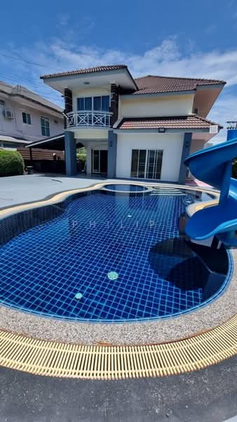 Explore this exceptional 5-bedroom, 6-bathroom family residence at View Point Villa Jomtien, one of the most conveniently located gated communities in the Jomtien area. This substantial home offers a generous 305 sq.m. of living area set on a 456 sq.m. land plot, providing plenty of space for large families or guests.