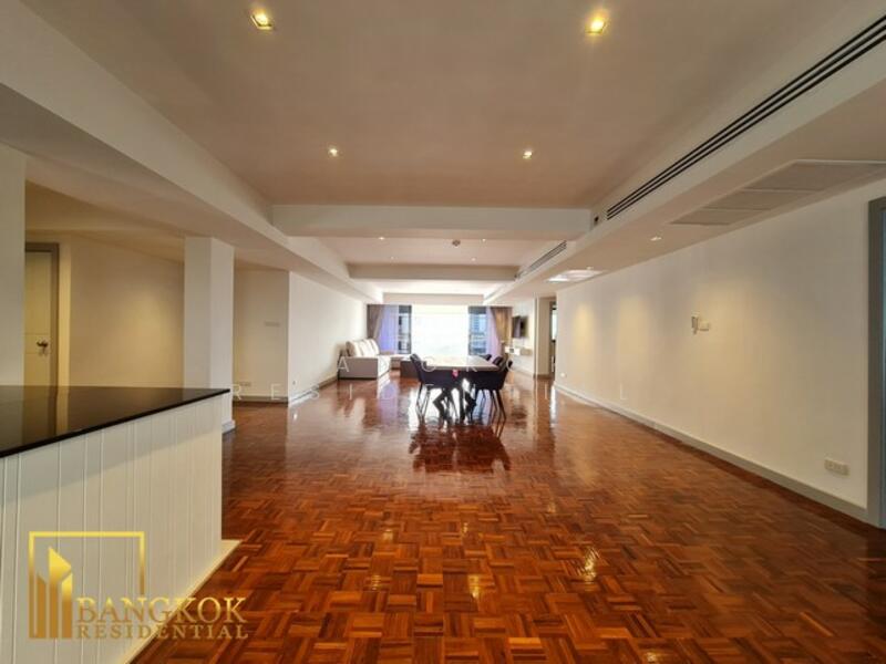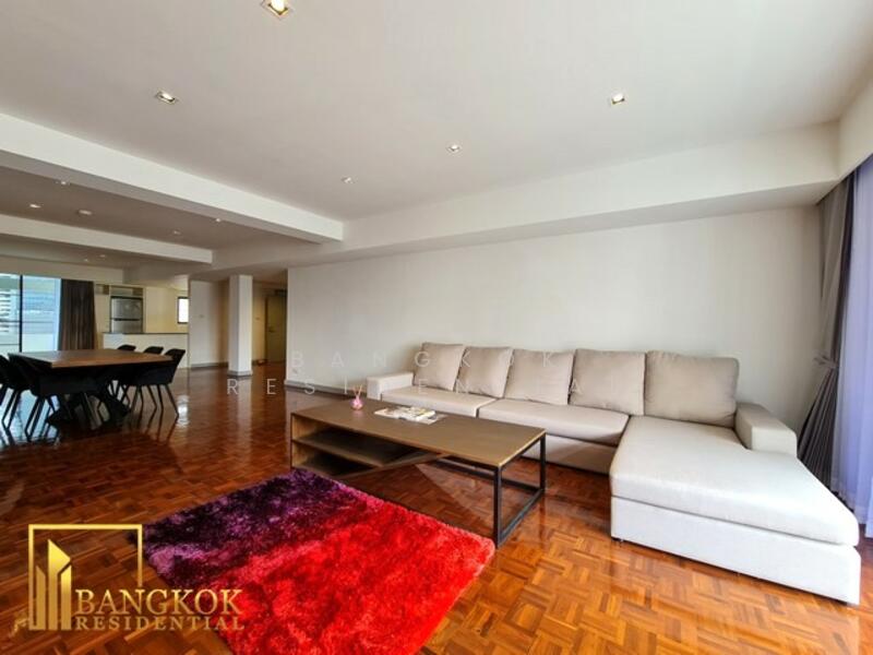 This renovated 3 bedroom apartment near Terminal 21 Mall in Asoke offers an exceptional blend of space, style, and city convenience, available for rent at 95,000 Baht per month. With an impressive 265 square meters of fully furnished living space, the apartment has been thoughtfully updated to reflect a modern yet comfortable design. The interiors feature a mix of sleek, contemporary furnishings and warm, neutral tones, creating an inviting atmosphere throughout. Generously sized living and dining areas, a fully equipped kitchen and well-appointed bedrooms provide a layout that supports both everyday living and entertaining.
