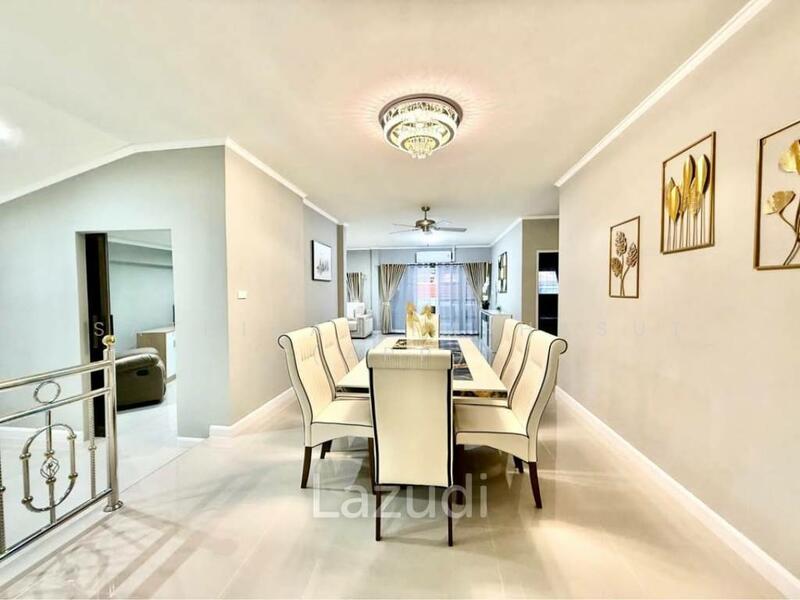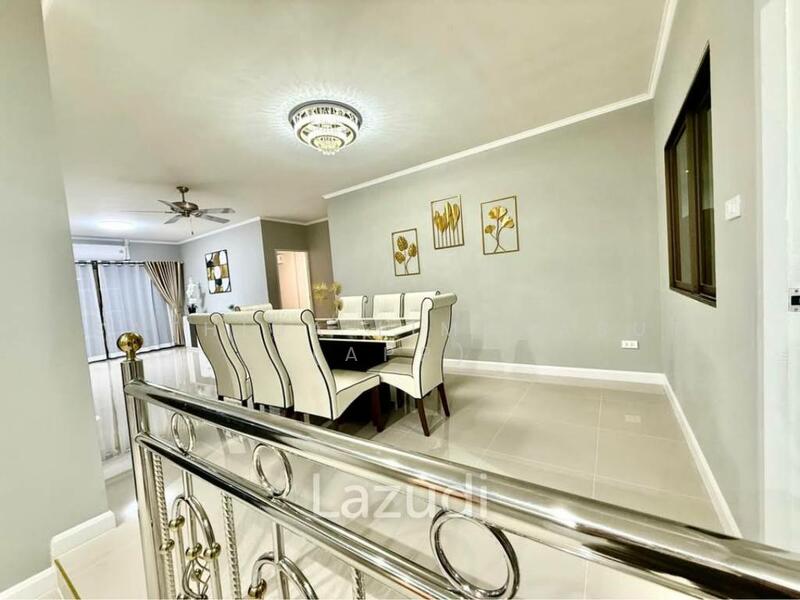 This is Single house 4 Bedrooms, 2 Bathrooms for Sale in East Pattaya, sitting on 300 Sqm of land plot size, 150 Sqm of usable area, comes full furnished, European kitchen, dining area, large living area with comfortable sofa, flat screen TV, goodsize bedrooms, wardrobe, en-suite bathroom, outdoor space with garden and private swimming pool.