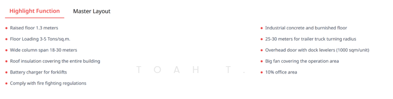 Floor size of this unit at warehouse cargo for rent bangna km.19 Samutprakan Bangplee 仓库出租 logistics warehouse near Bangkok air is 2,500 sqm.