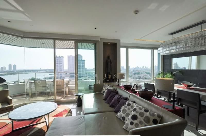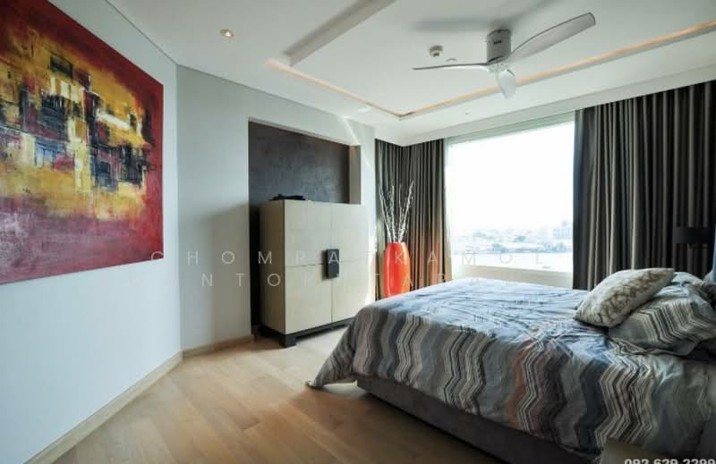 Luxurious Condo in Watermark Chaophraya Welcome to a luxurious urban oasis situated in the prestigious Watermark Chaophraya project in Bang Lamphu Lang, Khlong San, Bangkok. This stunning 165 sqm condo offers an exquisite living experience, located on the 15th floor of a 52-story skyscraper, boasting breathtaking city and river views. Spacious and Stylish Interiors This fully furnished condo features a modern open layout with an abundance of natural light flowing through large floor-to-ceiling windows. The living room showcases contemporary furniture complemented by decorative cushions and sleek flooring. A well-appointed dining area with a chandelier and water views provides an ideal setting for entertaining. Three Elegant Bedrooms Each bedroom is designed with style and comfort in mind. Luxuriously appointed with large windows, wooden flooring, and wall-mounted wardrobes, the bedrooms are perfect sanctuaries. Highlights include decorative lighting, which adds an artistic touch. Modern Amenities The well-equipped kitchen boasts an island with seating, a built-in dishwasher, and a wine cooler, all enveloped in light wood cabinetry. The bathrooms are elegantly designed with glass shower enclosures and modern fixtures. Outdoor Living Enjoy serene views from your private balcony, complete with a grill station and outdoor seating to enhance your city-living experience.