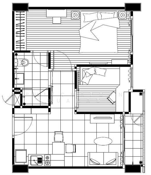 Fully furnished 2 bedrooms, 1 bathroom condo for rent with a floorsize of 48 squaremeters, located on the 3rd floor, at Whizdom @