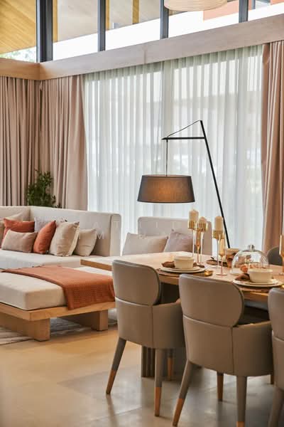 The Zen (Type S) is designed for those who appreciate a harmonious balance of comfort and functionality. With approximately 315 square meters of living space, this residence features 3 bedrooms and 3 bathrooms, complemented by two spacious living areas. Each unit includes parking for two vehicles with an EV charging station, as well as a dedicated space for a golf cart. Thoughtfully planned layouts create a cozy yet elegant environment, perfect for smaller families or couples seeking a serene retreat within a modern residential community.