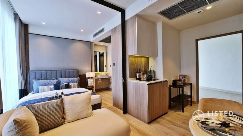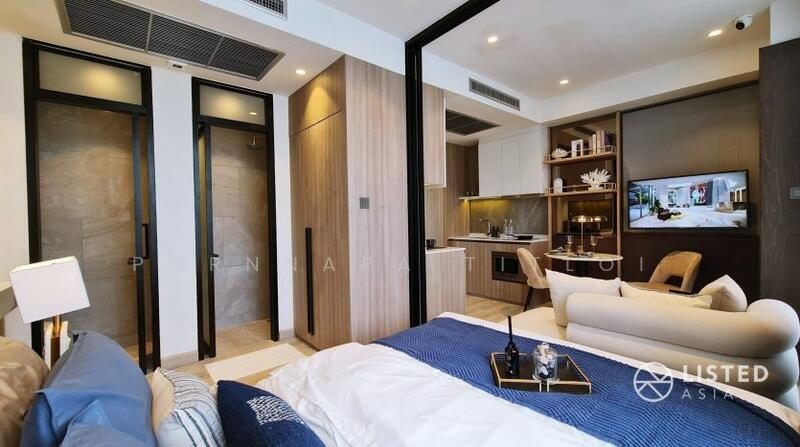 1 Bedroom 1 Bathroom for Sale at Wyndham Grand Residence Wongamat. Available in Foreign/Thai Name Ownership. Offering 27.66 Sqm and located on the 6th floor. It comes full furnished, built-in European kitchen with electric hob and microwave. Living area includes comfortable sofa, TV and balcony. The bedroom comes with a built-in wardrobe and an en-suite bathroom, offering comfort and convenience.