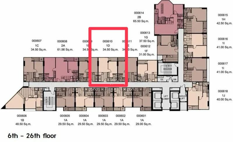 - 1 Beds 1 Baths 35 SQM.